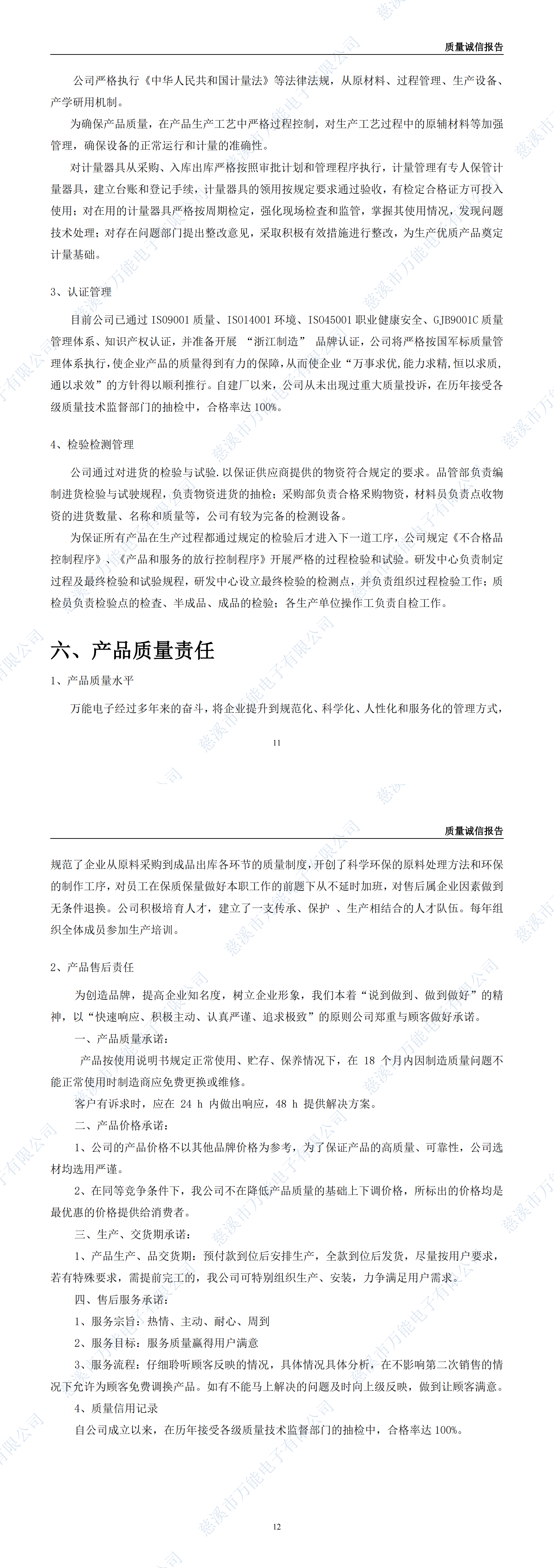 慈溪市萬能電子有限公司質(zhì)量誠信報告公示